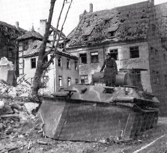 Es un Ramschaufelpanzer Panther, un modelo D para apartar escombros de la ciudad bombardeada.