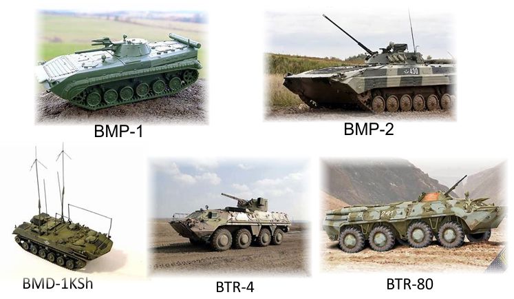 Vehículos de combate de infantería y apoyo.