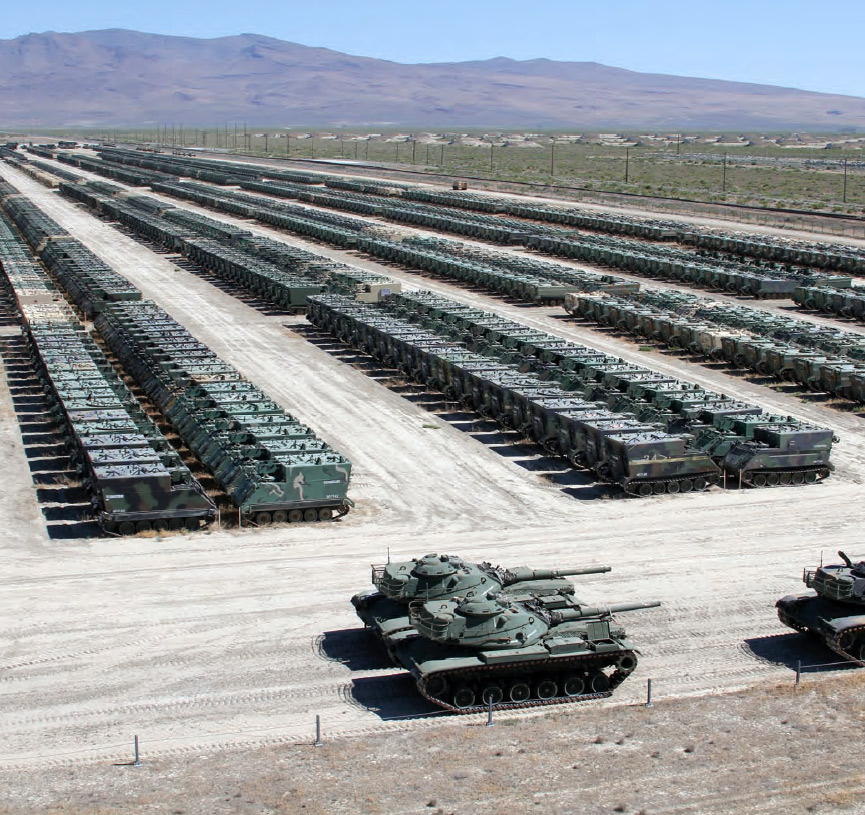 Pero incluso EE.UU., después del Tratado de Desarme, liquido un montón de Brigadas Acorazadas y Mecanizadas, peroooo, no destruyo el material, sino que lo almaceno en el gran depósito que tiene en las inmediaciones de Sierra Nevada, en la localidad de Herlong, California (al noreste de San Francisco) y es el mayor del país. Tiene una extensión de 145 kilómetros cuadrados y en él descansan miles de vehículos militares de todo tipo
