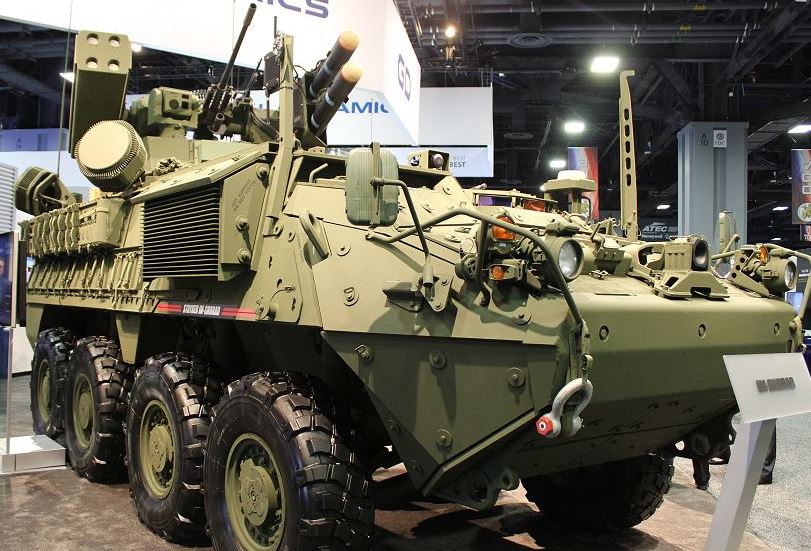 27.- M-1141 Stryker A1 IM-SHORAD, versión cuya única diferencia es el contenedor rectangular de los Stinger al ser más fino que los Hellfires.