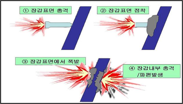 En ambos casos (HE y HESH) se produce una gran de onda de choque que genera una gran presión en la plancha haciendo que la parte interna de ésta mande fragmentos de metralla al interior del vehiculo, sea o no sea dúctil la plancha.
