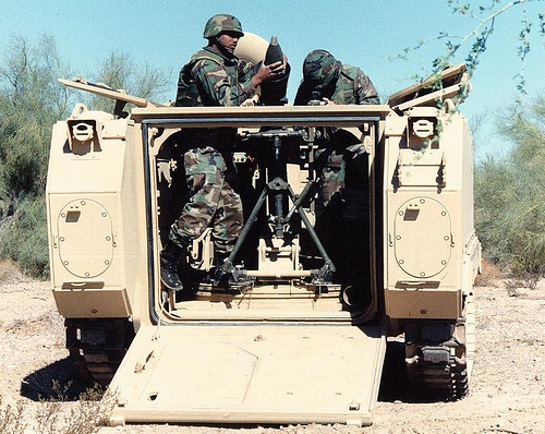perdona que te corrija pero creo que se trata de morteros de 81 mm modelo ll dado que si al principio montaba morteros de 120 pero dado que este mortero destrozaba la suspension del vehiculo se opto por este modelo que no machacaba tanto la suspensión