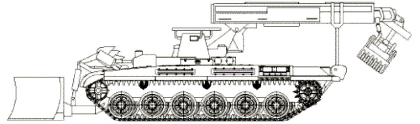 23.- Carro de zapadores TMI-2MA. Version mejorada del anterior con motor mas potente y sistema hidraulico de la grua repotenciado.