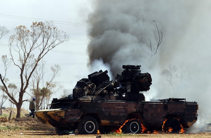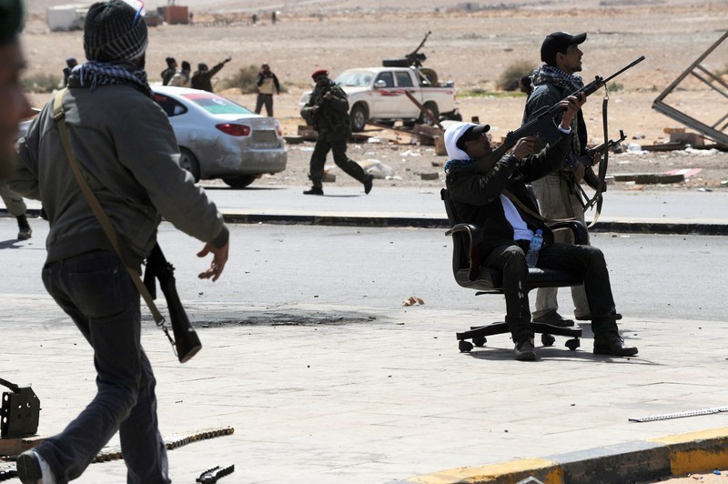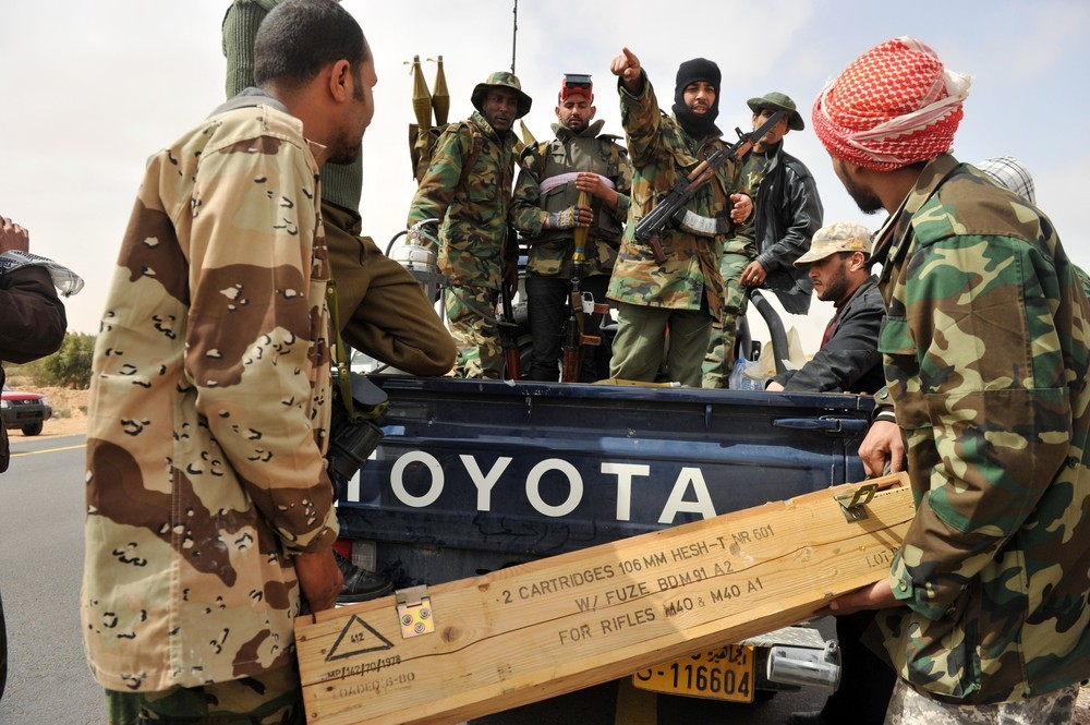 Toda esta parafernalia de armas, los sublevados las sacaron de los depósitos que asaltaron en las diversas ciudades en que se levantaron, pero sobre todo en una, Misratah, donde parece ser que había un gran depósito de sistemas ZPU-23-4 y gran cantidad de municiones y que después uno de los primeros objetivos que bombardeo Gadafi con su aviación.