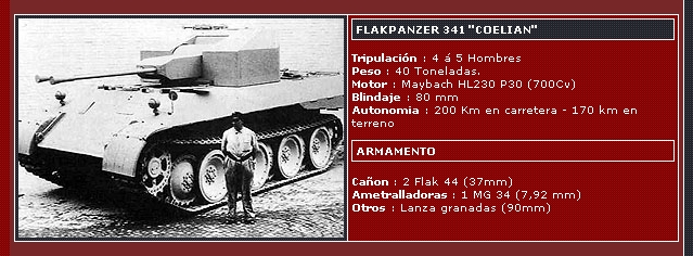El vehiculo es un desarrollo alemán de final de la segunda guerra mundial; sobre barcaza de panzer V (pantera) y una torre de doble cañón de 3,7 o de 5 cm.