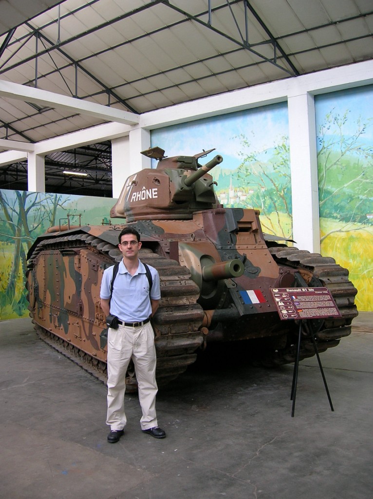 Meat al lado de un B1bis. mi tamaño, el de un hombretón a escala 1:48, da perfecta idea de lo exigua que debía ser la cámara de combate de este carro