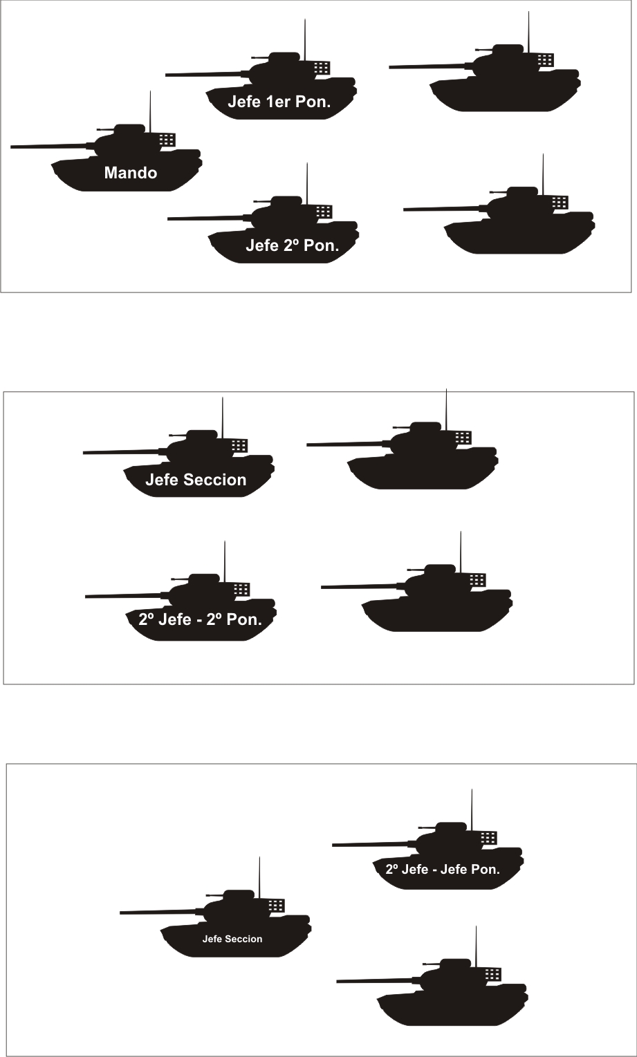 Pero hablamos de la sección de 3, pero también existe o existía hasta hace poco y más en nuestro ET., la sección pentomica, o sea 5 carros con la distribución que explique al principio.