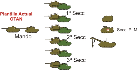 En los 80 EEUU, adopto la plantilla de 3 secciones de 3 carros y 1 carro de mando de cia., igual como otros países de la OTAN y de otras áreas.