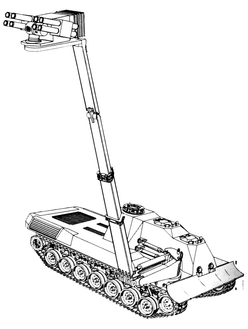 Un T-72 con una torre / brazo que porta un misil anticarro que no logro identificar.