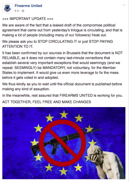 De Fire Arms United, sobre la poca fiabilidad del "comunicado" que circula al respecto de los acuerdos alcanzados.