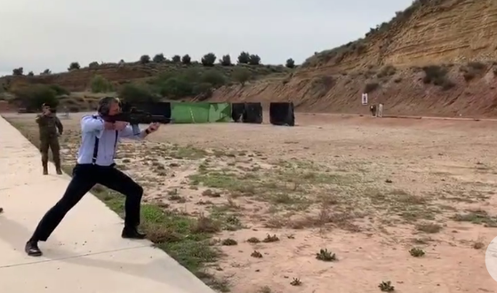 No entiendo que hace un civil, disparando material militar para el que no está autorizado ni cualificado.