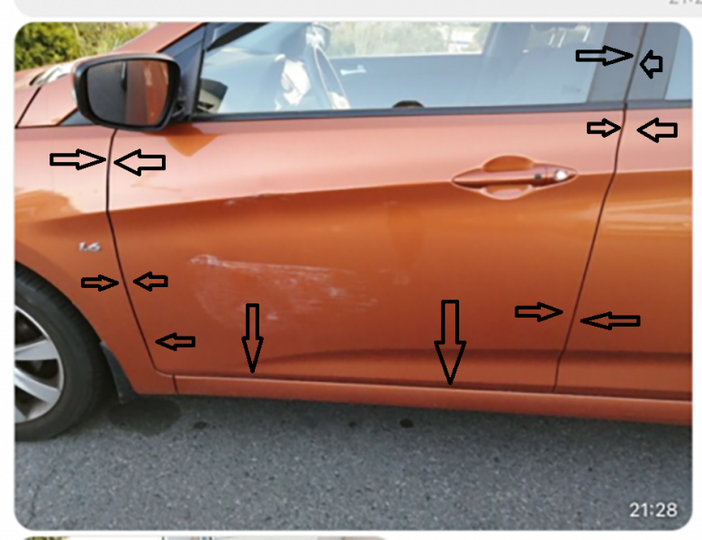 Que la foto engaña, dice, y no se puede abrir la puerta del abollazo, por favor, no me hagas reír, que carajo de abollazo, ni que niño muerto, que eso es prácticamente, NADA, que por 20 €, en un taller de aquí, no de Bielorrusia, te lo pulen a maquina en unos minutos, y ni se nota.........cantamañanas....