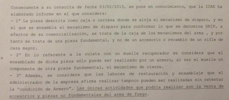 Pues el ICAE no lo entiende así, para ellos donde va alojado el disparador es pieza fundamental, aunque el propio disparador no lo sea.