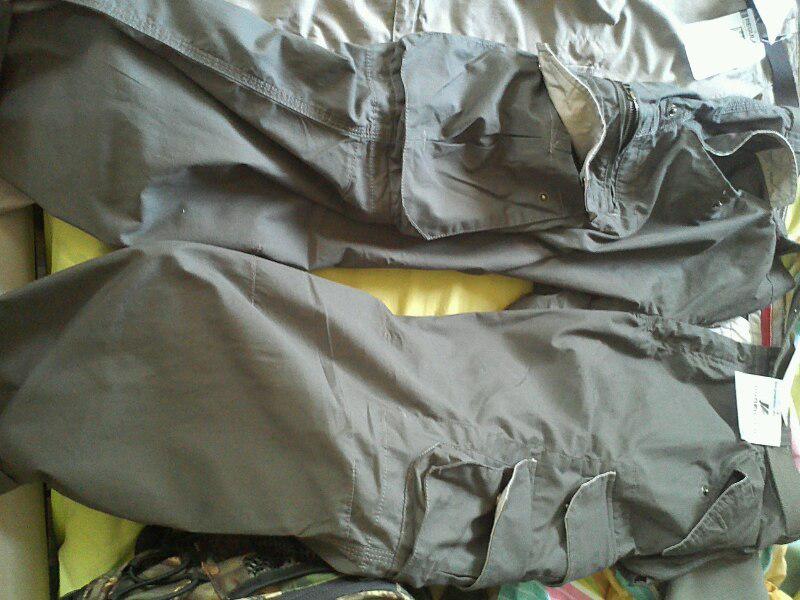 Y luego 2 pantalones, uno 100% poliester en color gris, muy ligero desmontable por lo que tengo pantalones largos y corto en uno para esta epoca del año, dispone de multiples bolsillo e incluye una correa