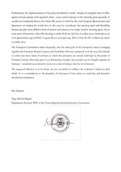 Ha llegado a mi conocimiento la noticia de que mi anterior aportación opinando sobre su propuesta de modificar la directiva 91/477/EEC endureciendo y, en su caso, prohibiendo el acceso a civiles a ciertos tipos de armas en función de su aspecto y apariencia militar había sido descartado.