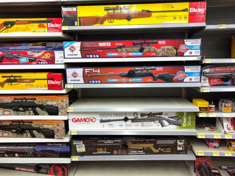 Armas de aire comprimido a tuti, incluidas algunas gamo, las coges, vas a caja, las pasas y pa tu casa.