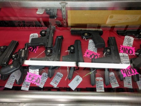 Bueno, queriamos comprar una tele para ver esta noche un partido de la NBA asi que como somos miserables estudiantes hemos ido a una tienda de PAWN SHOP que es como una casa de empeños o tienda de segunda mano. Me ha hecho gracia que al llegar habia un cartel que decia: We accept guns. Aqui ha empezado el desfile de cacharros que he visto hoy.