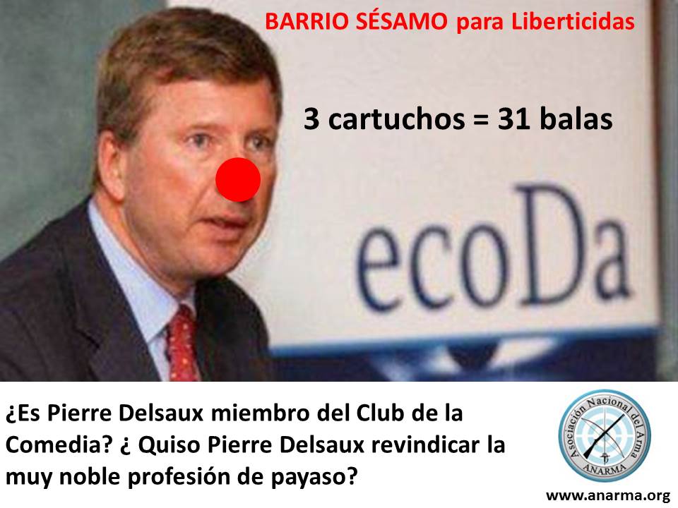 Podemos decirle que Pierre DELSAUX, Director General Adjunto de DG Grow, no sabe nada de armas. Él realmente piensa que TRES cartuchos es lo mismo que 31 balas (a 2:27:38). Y él no sabe nada acerca de los delitos con armas. Él realmente piensa cada año 1.000 personas son asesinadas con armas de fuego legales. (Algunos minutos más tarde) Sabemos por las estadísticas y estudios de cada país que las armas legales que intervienen en delitos son entre el 3% y el 22%, muchas relacionadas con la violencia de género. Usted no puede detener la violencia de género con una prohibición de armas de fuego.