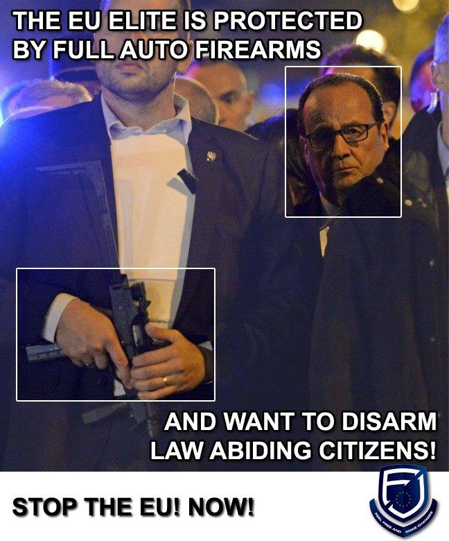 Mirad esta curiosa foto de Hollande, no parece que le molesten las armas si son para protegerle a él, automáticas para más INRI