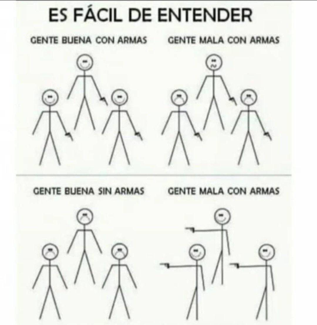 Armas de todo tipo para todos: para el yihadista y para el ultraconservador, para el de extrema izquierda y para el de extrema derecha, para el de bucaneros y para el ultrasur, ¿tal vez para los que la liaron en la Champions?, para el psicotico, para el paranoico, para el bipolar, para el depresivo. para el de mecha corta, para el ofendidito, para el que está en la edad del pavo, para el que cree que las mujeres son propiedades y para la que odia todo lo que le parece masculino, para el que se pone hasta arriba de copas y para el que se mete todo tipo de drogas, para los intolerantes alimentarios y para el terrorista ecologico, para el residente sin papeles o para el lumpen, para el taxista y para el de Cabify, para el liberado sindical y para el miembro de la patronal.......... Sería una sociedad segurísima la nuestra. Despues de defender ideas como esas, alguno se sorprende que el resto de la sociedad nos vea a todos los aficionados como un posible peligro hacia la sociedad.