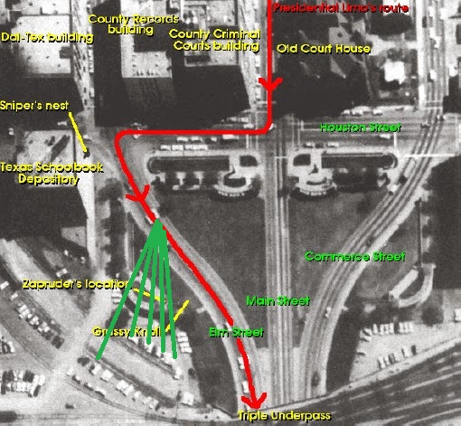 Excelente aportación. Indudablemente el mejor puesto para disparar contra JFK era el de Oswald. Trayectoria de la bala casi paralela al movimiento del coche, gran campo visual, sin obstáculos de ningún tipo (JFK iba en la parte trasera derecha del coche, es decir, del lado de Oswald). Por no hablar de que al disparar desde atrás menos posibilidades de que se viera nada del disparo. Mejor todavía, al disparar desde una habitación, el puesto de tiro podía estar perfectamente preparado, sin riesgo de que apareciera nadie de improviso y buena oportunidad para la ocultación.