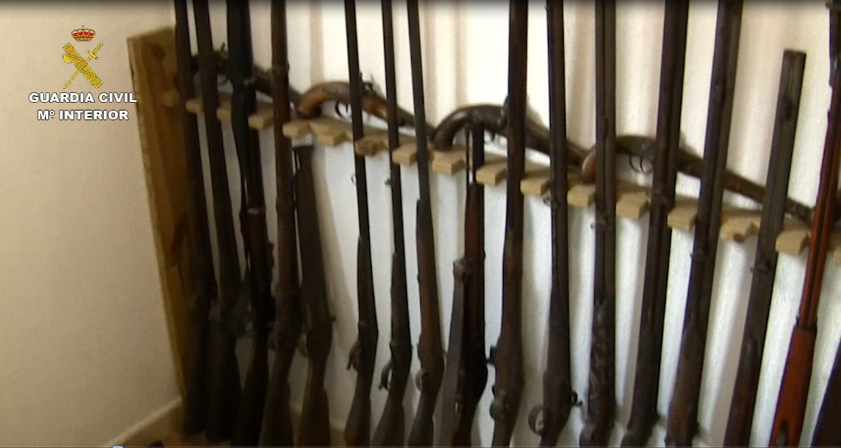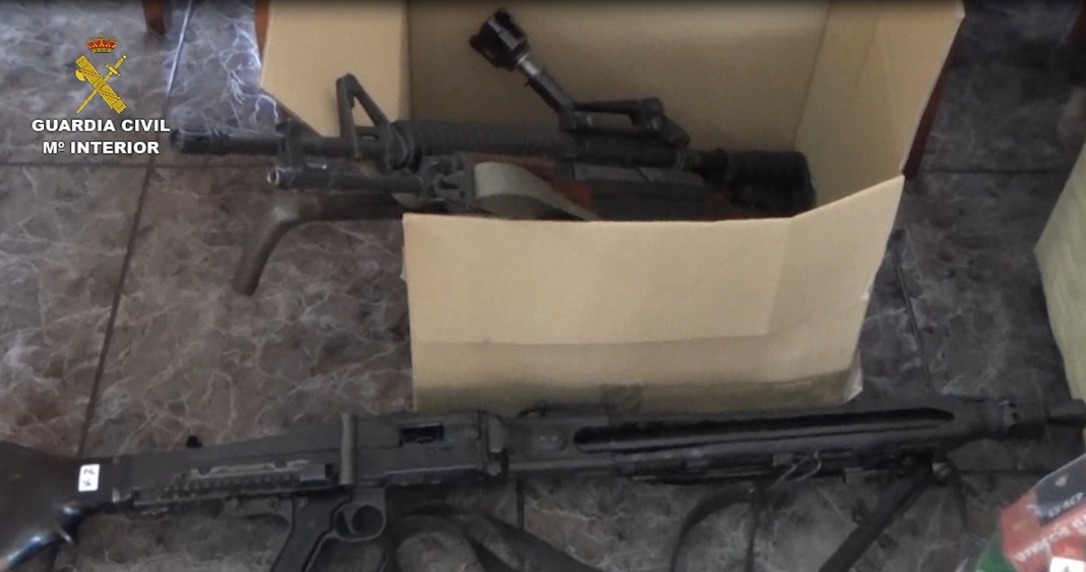 En la web de la GC se puede descargar el video de esta operación, llamada Taronja, en la que aparecen todas las armas, el taller, las herramientas, la munición ... Hay de todo y de lo más variopinto, antiguo y moderno, fusiles, escopetas, pistolas, revolveres, desde mosquetes de avancarga y pistolas mototiro de avancarga también hasta fusiles de asalto, un cañón en miniatura, piezas de todo tipo, escondido en armarios, debajo de los muebles de la cocina ...