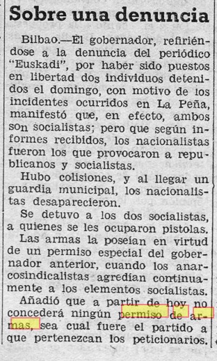 Por otro lado parece que en los años 30 se daban estos permisos con bastante alegría, eran los años del llamado pistolerismo sindical (como sabéis incluso hay una pistola de Star llamada sindicalista por este motivo) en los que partidos políticos y sindicatos se enfrentaban entre ellos a tiros ... y había somatenes armados y milicias ...