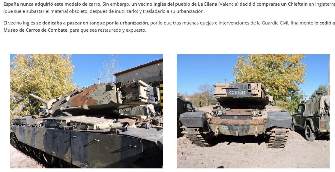 Hace bastantes años, un ingles afincado en valencia se compro un chieftain y lo utilizaba solo por su finca, hasta que se lo prohibieron.