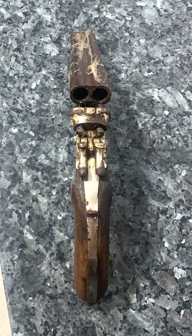 Hola, buenos tardes a todos, un amigo se ha encontrado en un fondo de baúl de su padre esta pistola de Garrucha, creo no confundirme, ¿Sabe alguien la historia de esta pistola en concreto? Gracias de antemano.