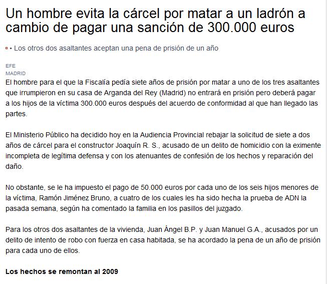 Cabo_Tito escribió:(mas o menos, lo que intento decir es que por lo visto al H.P. que entra en tu casa, rompiendo cerrojos -escalo creo que es eso- con premeditacion y alevosia (se reunieron y decidieron ....) le cae como mucho un año ... si es que no los echan sin mas del juzgado -una y otra vez-