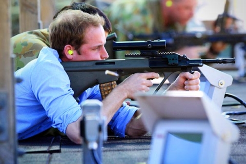 El chico no se cortó, en un viage a Australia, en enero 2010 (Sydney) en la que se unió a veteranos de Irak y Afganistán de la guerra para practicar el tiro al blanco.