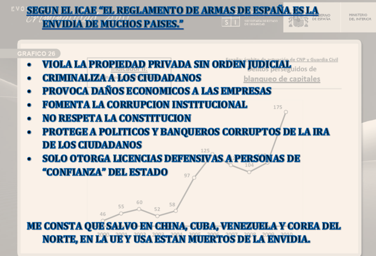 Creo que el ICAE, está ya perfectamente informado de cuantas leyes contraviene del Reglamento de Armas europeo, porque ese es el reglamento que deberiamos de tener hace mucho tiempo, como europeos que somos. Porque estamos a nivel europeo, pero solamente para pagar y bajarse los pantalones.