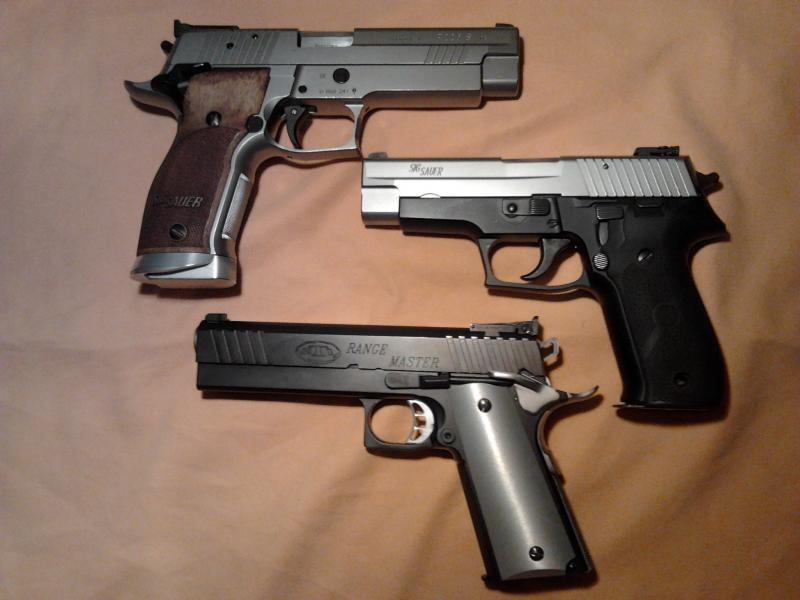 Por si te sirve de algo: yo también tengo una P-226, tal cual, sólo le he cambiado el alza por una micrométrica, y a pesar de que tengo otras armas, una P-14 del 45 y un carro infinity para ella del 9, o una Target Champion, te diré que con la Sig Sauer es con la que más a gusto tiro, tanto en IPSC como en precisión (ni te imaginas lo que se le puede sacar con punta de plomo troncocónica de 122 grains cargada sobre 4, 8 grains de BA-9) y que llevará, sin exagerar, más de 7.000 cartuchos tirados... y como el primer día: no hay holguras, desajustes ni problemas, jamás me ha interrumpido un solo disparo, traga lo que le metas y si tú haces bien tu parte, ella responderá siempre de maravilla. Un arma excelente, te lo garantizo