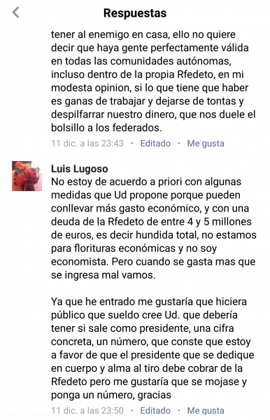 En primer lugar, Es complicado que alguien pueda contradecir algo cuando alguien ha escrito lo que dice anteriormente, concretamente en este caso en Facebook el 11 de diciembre de 2016 a las 23:50.