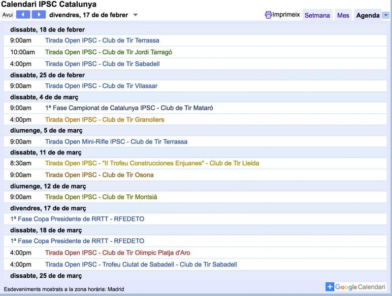 Meta-Calendario de Google con las competiciones de los siguientes Clubs de Catalunya: