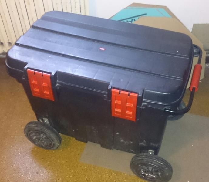 El que nosotros tenemos es de carpintero tirando a grande y se modificó de 2 ruedas fijas a 4 medianas de goma desmontables.. Y con 2 divisiones dentro es suficiente. Cinturones y cascos en un lado, documentación y reglamentos y otras necesidades