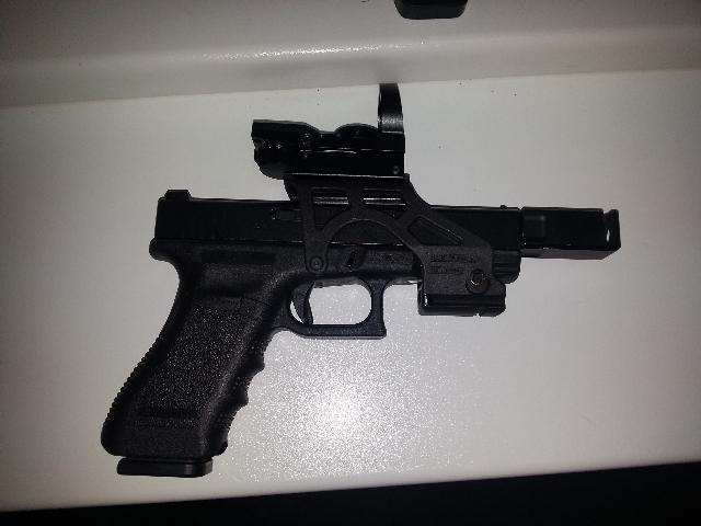 Respondiendo al amigo Coopy, el visor lo he utilizado en un rifle calibre .3oo Win. Mag. y ha aguantado. No sé lo que durará en la Glock, espero que mucho.