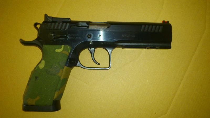 El “grip tape” es cinta específica para poner en las empuñaduras de las pistolas, tipo cinta antideslizante de los peldaños de las escaleras, patines (skate) o las específicas con la forma precortada de la empuñadura (ej.- Tru-Grip, A-Grip)