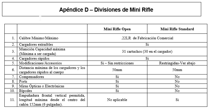 Con esto en la mano, en las división Open de Mini-Rifle se pueden usar TODO tipo de miras que usen lentes y/o circuitos electrónicos. Incluyendo los laser. Sin restricción.