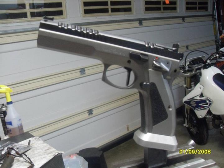Os cuelgo una fotos de las mejoras que se han hecho a una CZ de Open, las sustanciales no son estéticas, son más bien internas; muelles, disparador, nueva guía..., pero aquí están. De cualquier forma todavía no está terminada y le quedan algunos trabajos.