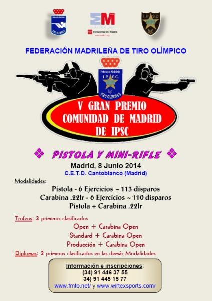 El Gran Premio de la Comunidad de Madrid de este año se compone de las modalidades de Arma Corta y de Mini-Rifle IPSC, pudiendo optar por cualquiera de ellas o por la combinada de ambas.