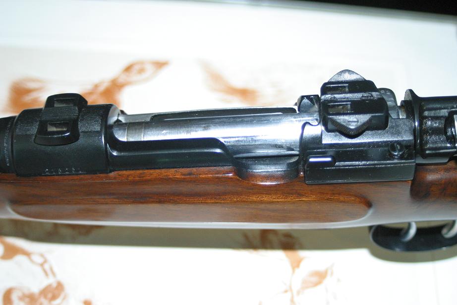 175 mts. El nombre del fabricante grabado en el nervio del cañón , fabricado en acero Krupp. La acción perfectamente acabada con punteado en la parte superior y mecanizada para instalar unas bases Schuler para óptica. La parte inferior de estilo militar cuidadosamente esculpida y el guardamonte bastante amplio. No era raro para los cazadores solicitar ésta parte inferior y el trabajo de remodelación es excelente. Actualmente descatalogado éste
