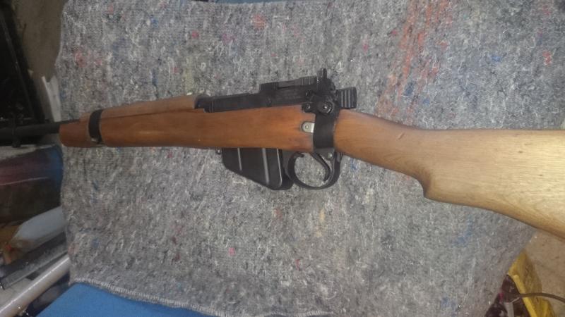 Hola,vuelvo a poner a la venta una carabina enfield nº5 de las fabricadas para el mercado americano a partir de recortar un nº4,esta perfecta de pavon,estriado a espejo y maderas en buen estado,lleva el alza regulable y tambien la fija de librillo,esta en la coruña y el precio ahora 280 euros portes incluidos a peninsula,aceptaria cambio por fusil historico.