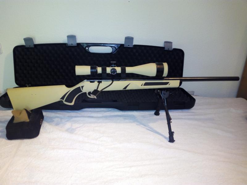 Buenos dias, pongo a la venta mi carabina MARLIN xt 22 vr, por no utilizar. Solo a disparado 200 cartuchos. Con la carabina van incluidos un visor tasco varmint 10-40x50, bipode Harris pivotante, bolsa de transporte y saquete trasero. el arma esta guiada con la E. La carabina tiene pintura krylon arena. Carabina de cerrojo con culata sintetica y cañoñ flotante Match de 22" (56 cm). Idonea para competir en mini F-class. el arma se encuentra en Madrid.