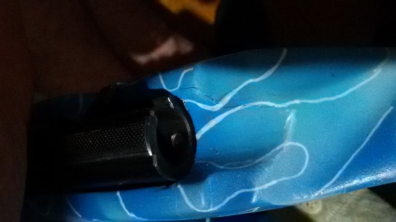 La saque para pegar unos tiros con ella y comprovar que funciona y agrupa perfectamente, pero tambien vi que a la culata le ha salido un defecto visual.