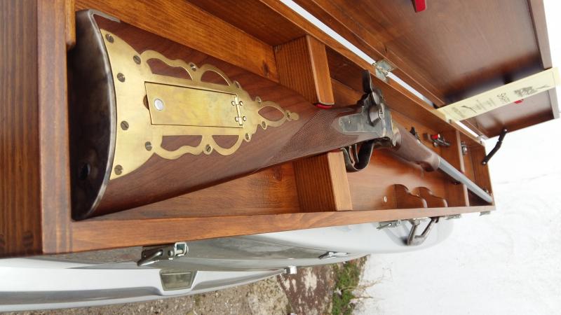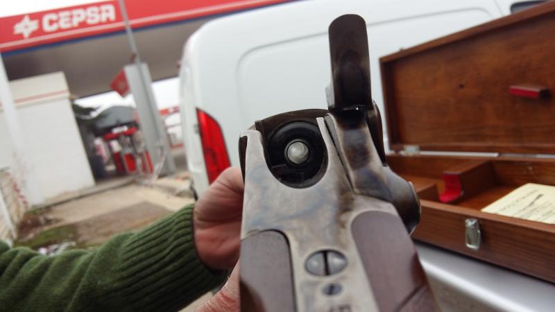 Cañón octogonal, gatillo al pelo, dos diopter, túnel y alzas en cola de milano, madera con picado en diamante y estuche artesanal también construido por el mismo.