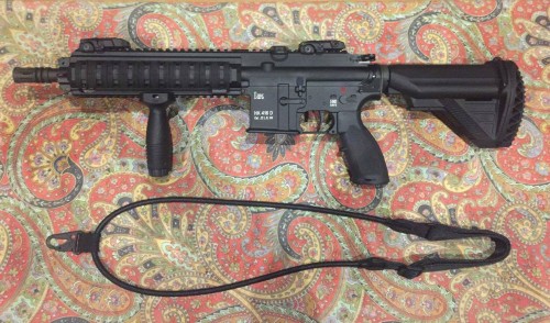 carabina calibre 22 lr , marca HK . modelo 416d , modelo cañon corto , como nuevo muy poco uso , se incluyen accesorios como , correa un solo punto HK , enganche correa magpul negra , 4 cargadores Hk 20 tiros negros , grip delantero HK , protectores carril magpul negros , funda tactica cordura negra.