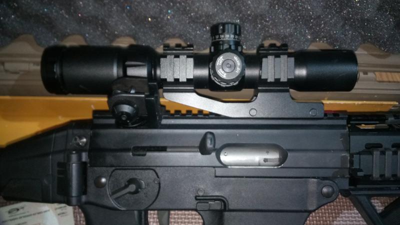 Visor 1,5-4 x 28, 3/4 dot con BDC e iluminado en rojo, verde y azul. con su funda de neopreno y tapas abatibles.