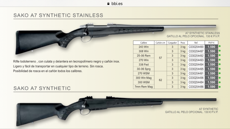 Vendo rifle sako a7 sintético acero inoxidable en243