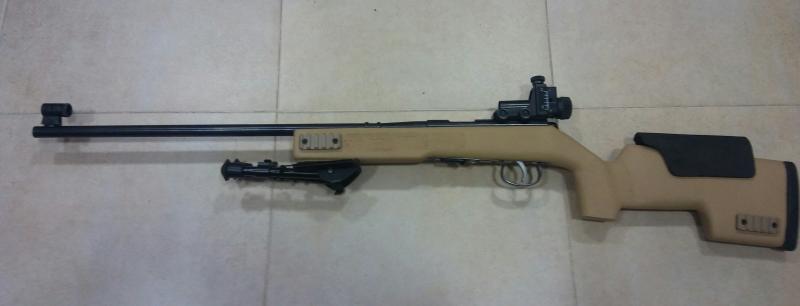 [url][/url]Carabina en 22lr con culata artesanal de madera pintada y carrillera de kidex. Se regala monturas para visor y alza original ademas de diopter y punto de mira tipo tunel. Bipode copia en aluminio totalmente funcional. El arma esta en malaga giada en E. Portes a cargo del comprador si los hubiera